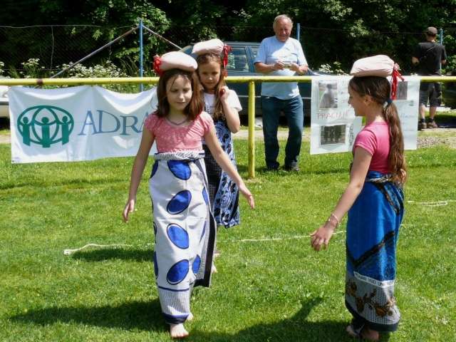 Při prezentaci neziskových organizací v červnu mohli adráci z Hanušovic připravit pro děti velmi zábavný i poučný program, kdy si děti například vyzkoušely, jaké to je nosit věci na hlavě a ne v rukou.