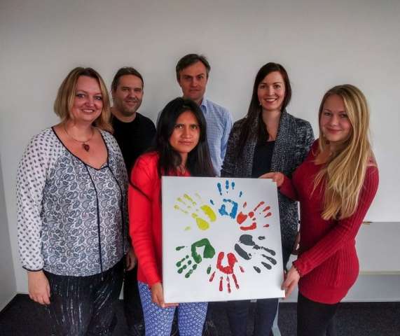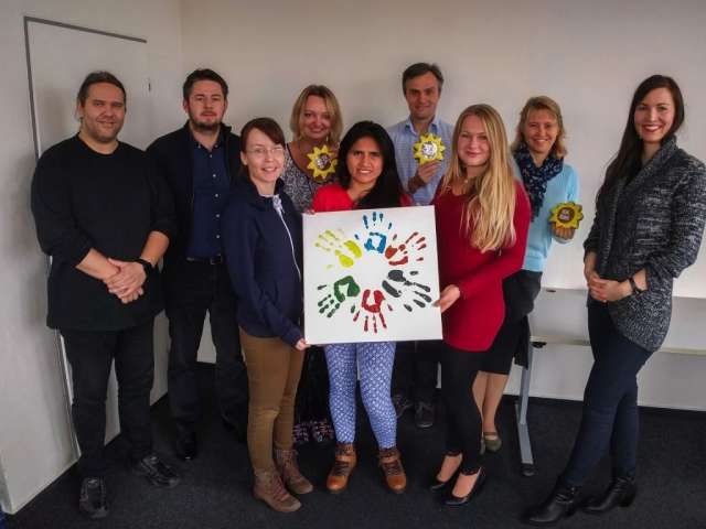 Otisky rukou vytvořily obrazec připomínající slunce. A my doufáme, že to nezůstane jenom symbolem počátku, ale i naší práce. A to, že budeme moci prostřednictvím SDK ADRA šířit paprsky pomoci kolem nás.