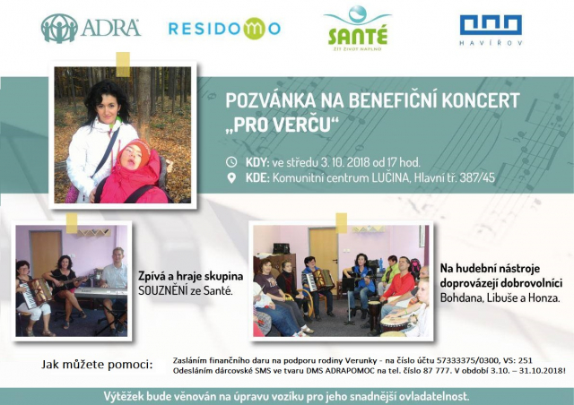 To jsou slova zástupkyň Dobrovolnického centra ADRA Havířov, které se podílelo na organizaci benefičního koncertu pro těžce handicapovanou Verču. O hluboký hudební zážitek se totiž postarali mimo jiné i ti, kteří na vlastní kůži vědí, co to je mít zdravotní problémy.