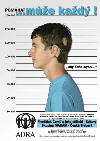Jakub z České Třebové, žák 8. třídy základní školy, trpí trvalou a vážnou sluchovou vadou. Díky dárcům z široké veřejnosti se podařilo v polovině února uhradit Fakultní nemocnici v Motole a firmě Aima s. r. o. faktury za moderní řečový procesor v hodnotě 123 351 korun.