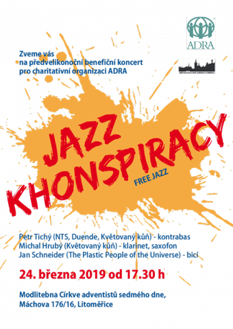 V nedělní podvečer 24. března 2019 se modlitebna sboru rozezněla soudobou hudbou freejazzového tria Jazz Khonspiracy. Organizátoři tuto benefiční akci věnovali 46letému Jiřímu, který poprvé onemocněl před 13 lety. Poslední tři roky je ale již absolutně odkázaný na manželku. Čtyřčlenná rodina tak žije od té doby jen ze sociálních dávek. Nepřetržitá péče o ležícího pacienta je však fyzicky, psychicky i finančně náročná, a tak se matka pana Jiřího před časem obrátila s prosbou o pomoc na naši nadaci. Borovcovi jsou velice soudržná a milující rodina, která se snaží Jiřímu všemožně pomáhat. Přidávají se k nim podle svých možností i sousedé a přátelé. Ten je pak všechny odměňuje za jejich čas, zájem, lásku a péči svým úsměvem.