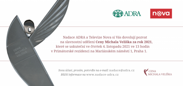 Zveme vás na vyhlášení Ceny Michala Velíška za rok 2021