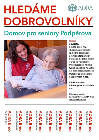 Máme radost, že můžeme vysílat dobrovolníky do dalšího domova pro seniory v Brně a to konkrétně na Podpěrovu ulici v Medlánkách.