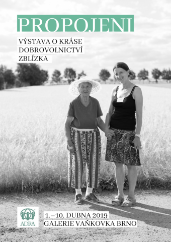 Různé tváře dobrovolnictví představuje fotografická výstava humanitární organizace ADRA v brněnské Galerii Vaňkovka. Černobílé fotografie zachycují dobrovolníky a to, co světu přinášejí: laskavost, zájem i lidskou blízkost. Dobrovolnictví propojuje svět potřebných se světem těch, kteří chtějí pomáhat, a tak i výstava nese tematický název Propojeni.