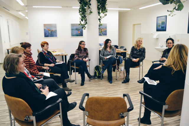 Letos jsme se sešli v každém z našich domovů zvlášť. Cílem bylo popovídat si nejen s dobrovolníky, ale i pracovníky, a propojit obě strany tak, aby vše fungovalo na jedničku. V první části dobrovolníci i zaměstnanci mohli vyjádřit své návrhy, jak by dobrovolnická služba mohla probíhat lépe. Dobrovolníci se ptali na praktické věci, jak nejlépe pomoci seniorům nebo například na to, jestli mohou vzít na návštěvu psa. Pracovníci domova navrhovali zlepšení v kontaktech s dobrovolníky, zvláště v situacích, kdy musí klient do nemocnice.