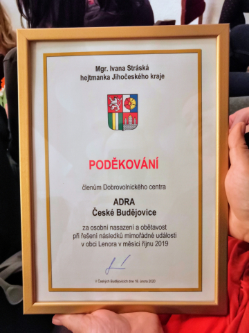 Jak se píše na stránkách Jihočeského kraje, poděkování se dostalo záchranářům, profesionálním i dobrovolným hasičům, policistům, neziskovým organizacím ADRA, ČČK a Diecézní charita, místním praktickým lékařům, občanům Lenory, kteří na místě nejvíce pomáhali i starostovi obce Antonín Chrapanovi. Ocenění si odnesli pamětní plaketu, kterou jim předali zástupci kraje a poté pro ně byl připraven koncert skupiny New Rangers.