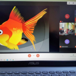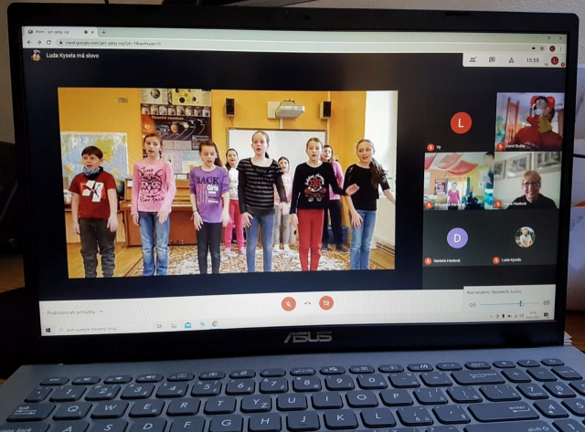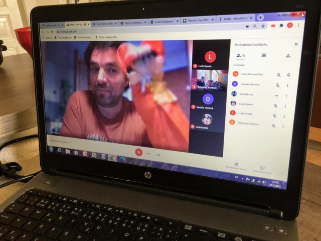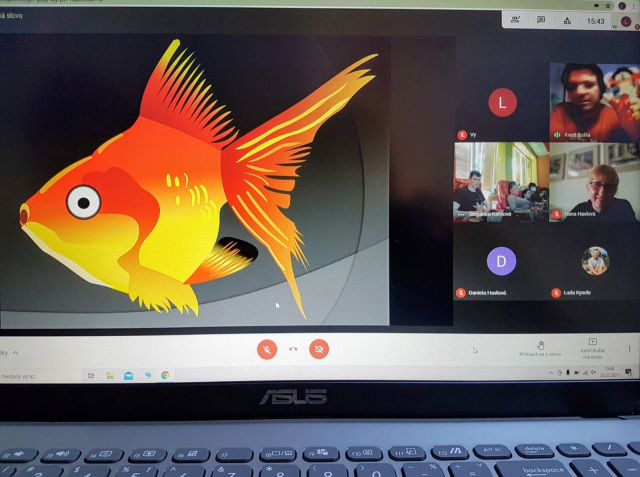 Ale vznikl jeden moc pěkný nápad. Co se za nimi podívat prostřednictvím počítače, techniky, on-line vysílání? A ještě navíc s příběhem či pohádkou? O to se postaral dobrovolník Kája Bušta se svým pohádkovým Kašpárkem a technický tým dobrovolníků. Tento čtvrtek si děti poslechly příběh O zlaté rybce a ještě se tančilo při písničce Otec Abraham.