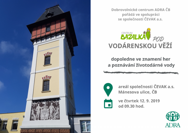 Když jsme dostaly od společnosti ČEVAK a.s. nabídku využít pro naše klienty krásný a upravený areál pod Vodárenskou věží, hned jsme si vzpomněli na děti z centra Bazalka. „Tady by se jim určitě líbilo!“, říkali jsme si. A tak slovo dalo slovo, schůzka dala další schůzku a na světě je dopolední akce nazvaná Bazalka pod Vodárenskou věží. Vždyť co by dětem na začátku nového školního roku mohlo udělat větší radost, než vyrazit někam ven mimo školní lavice a pocítit ještě trochu vůni prázdnin.