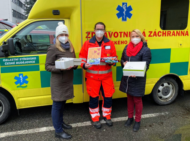 Tento týden jsme se zásilkou dobrot navštívili Zdravotnická záchranná služba Jihočeského kraje. Poděkovali jsme záchranářům za jejich službu a nasazení, které je dlouhodobě obrovské!