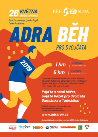 Velké usilí Dobrovolnického centra v Českých Budějovicích je v těchto dnech a týdnech upřeno k zajištění organizace druhého ročníku charitativního ADRA běhu. Poslední neděli v květnu - 26. 5. v 10:00 hod. se v budějovickém parku Stromovka uskuteční běh pro tříletá dvojčata Meislovy, které jsme vybrali ve spolupráce s centrem ARPIDA. Kluci Damiánek a Tadeášek z Českých Budějovic se narodili ve 24. týdnu těhotenství, a od té doby vedou oni i jejich rodiče každodenní boj s mnoha zdravotními komplikacemi a obtížemi.