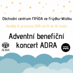 S velikou radostí Vám oznamujeme, že letos se nám naskytla příležitost pořádat ve spolupráci s OC Frýda na Příborské ulici ve Frýdku-Místku Adventní benefiční koncert ADRA, který proběhne dne 8. 12. 2019 od 14 hod. Slavnostním odpolednem nás provede herečka Ostravského divadla Mír Kristýna Lišková. Vystoupí cimbálová Kotkova muzika a zpěvák Voxel.