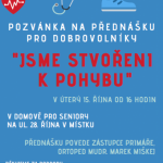 Tak to bylo téma naší přednášky, kterou jsme uspořádali v rámci průběžného vzdělávání pro naše frýdeckomístecké dobrovolníky. A že je toto téma zajímá, potvrdila jejich hojná účast. Přednášel pan MUDr. Marek Miškej, zkušený ortoped a chirurg páteře a ve dvou hodinkách dobrovolníky seznámil s pohybem nejen z pohledu medicínského, ale také po stránce lidské psychiky.