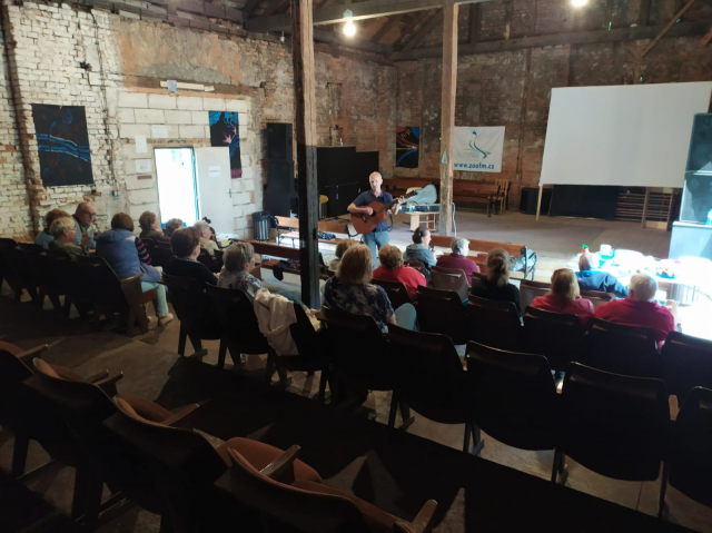 Přírodní prostředí bylo velmi krásné a bylo by bývalo ještě krásnější, kdyby kolem neustále neobcházely dešťové mraky. Ale protože dobrovolníci mají velký optimismus a stále dobrou náladu, počasí nám nevadilo. S kytarou a písničkami se atmosféra uvolnila a naplnila pohodou a tak jsme se ohlédli na uplynulé měsíce. A k tomu vzpomínání a vyprávění samozřejmě nesmělo chybět něco k zakousnutí. A že opravdu bylo do čeho! Společnost H+H nám darovala 30 ks špekáčků ke grilování, za což jim velice děkujeme! Špekáčky se grilovaly, voněly a také rychle zmizely… další krásné setkání, na které se bude dobře vzpomínat.