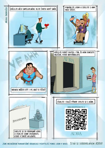 Od poloviny ledna se můžete setkat v autobusech městské hromadné dopravy s novým komiksem Dobrovolnického centra ADRA Frýdek-Místek, které jezdí nejen po Frýdku-Místku, ale také zajíždí i do okolních obcí. Druhý komiks v pořadí představuje dobrovolnictví jako smysluplnou volnočasovou aktivitu, která přináší radost, přátelství, ale i cenné zkušenosti.