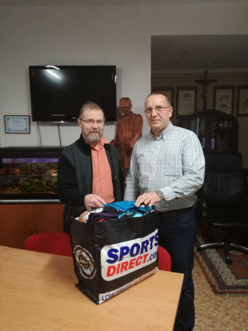 Firma KLEINWÄCHTER holding s.r.o. darovala Dobrovolnickému centru ADRA Frýdek-Místek kancelářský papír na vizitky a letáky. Zároveň zaměstnanci uspořádali sbírku oděvů, které budou předány sociálně slabým občanům Frýdku-Místku v rámci sociálního šatníku. K předání věcí došlo 10. ledna 2018. Na fotografii je pan Kleinwächtr starší a pan Staněk - vedoucí DC ADRA Frýdek-Místek.