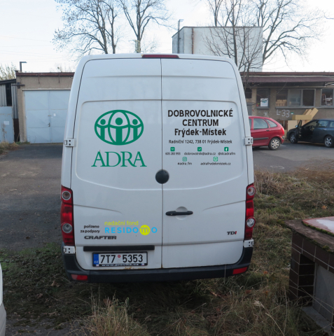 Tato významná činnost dobrovolnického centra by nemohla být uskutečněna bez poctivé práce dobrovolníků a zaměstnanců, kterým za jejich činnost velice děkujeme a dále bez dárců oblečení, obuvi a dalších věcí, které jsou v charitativních obchůdcích a sociálních šatnících nabízeny. Protože dobrovolnické centrum spravuje kontejnery na textil v Třinci, Jablunkově, Kroměříži, Frýdku-Místku, Metylovicích, Čeladné, Frýdlantu nad Ostravicí, Janovicích, Frýdku-Místku, Stříteži a objem darů je opravdu značný, je pro nás důležité vlastnit velký automobil, kterým zmíněné dary můžeme převážet (dále také sbírky pro ADRA uskutečněné školami - loni ve spolupráci se ZŠ Kopřivnice - Lubina).