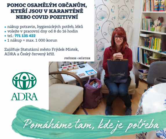 Osamělým lidem v karanténě i nakaženým budou ve Frýdku-Místku nakupovat dobrovolníci ADRA a ČČK. Po půl roce tak opět budou zaměstnanci a dobrovolníci pomáhat tam, kde je aktuálně nejvíce potřeba. Osamělí lidé v karanténě nebo Covid pozitivní mají možnost nechat si nakoupit důležité potraviny, léky nebo hygienické potřeby.
