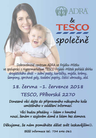 Jedná se již v tomto roce o čtvrtou sbírku. Velice moc děkujeme Hypermarketu Tesco na Příborské ulici, že tyto sbírky můžeme u nich pořádat :-).
