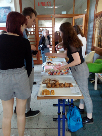 Středa 24. dubna – pro někoho to byl zcela tradiční den. Ráno vstát, posnídat a jít do práce nebo do školy. Pro studenty Gymnázia Frýdlant nad Ostravicí to však byl neobyčejný den. Studentky Sára Urbančíková a Tereza Kořínková se rozhodly, že se svými spolužáky upečou dobroty, které pak budou svým kamarádům a učitelům o přestávkách prodávat. A tak se i stalo. Kolem bohatého stolu, kde bylo mnoho druhů sladkého a slaného pečiva, bylo opravdu živo. Není divu, všechno bylo moc dobré. Celá akce měla navíc charitativní rozměr – za utržené peníze celá třída uspořádá pro uživatele v Domově pro seniory Frýdlant nad Ostravicí netradiční akci. Seniory tak čeká výlet zakončený sladkou zmrzlinou.
