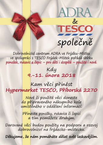 TESCO A ADRA SPOLEČNĚ – SBÍRKA PONOŽEK, RUKAVIC A ČEPIC – JIŽ TENTO VÍKEND!
