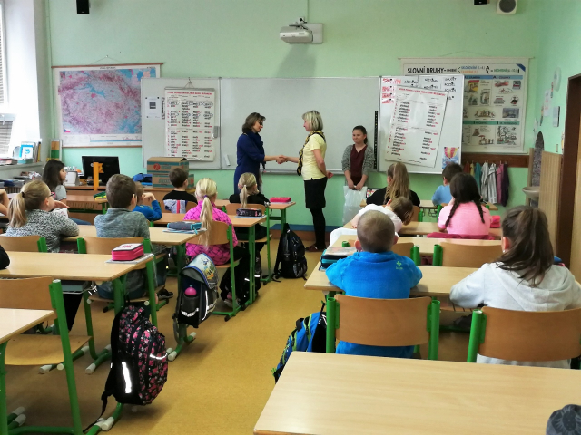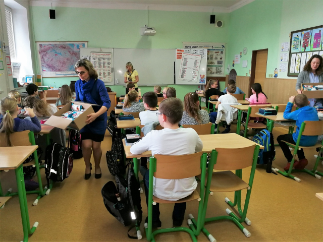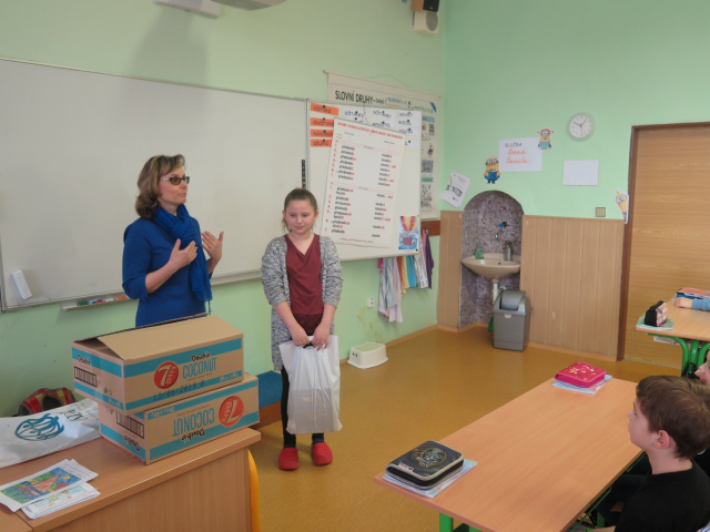 Lucce, ale i všem ostatním žákům 4. A jsme osobně poděkovali za účast v soutěži, předali jsme jim sladkou odměnu v podobě dvou krabic croissantů od společnosti DELIKOMAT s.r.o.