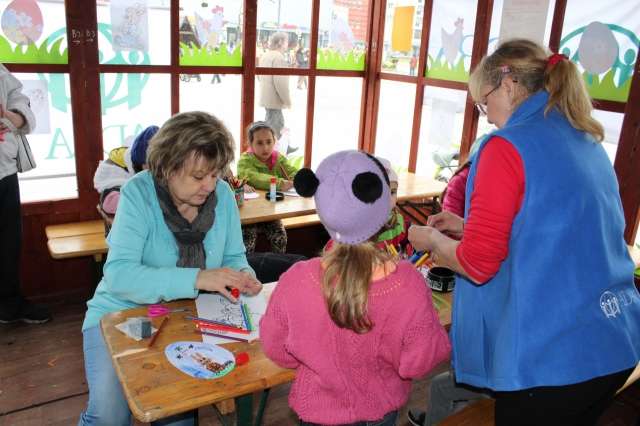 Děti si mohli vyzdobit papírové vajíčko, což byla asi jejich nejoblíbenější činnost. Kreativita dětí byla opravdu obdivuhodná – chlapcům na vajíčkách nechyběla namalovaná auta, dívkám zase srdíčka! Dále děti malovaly obrázky s velikonočními motivy, barvily velikonoční omalovánky. Během sobotního dne navštívilo náš domeček 130 dětí, kterým jsme udělali radost, ale zároveň potěšily ony nás – svými výtvory!
