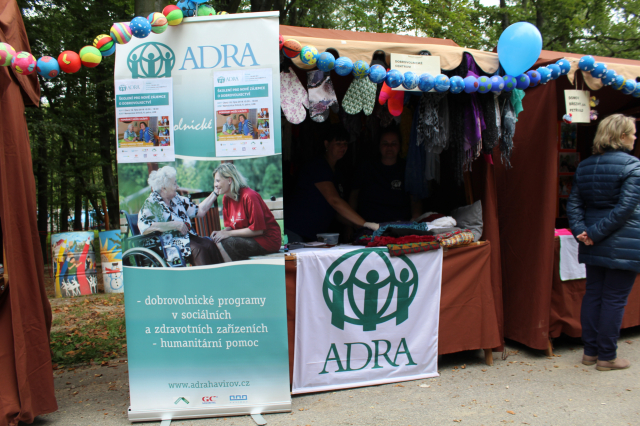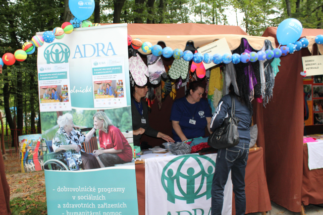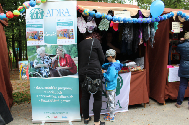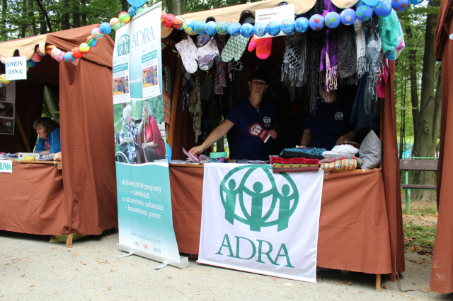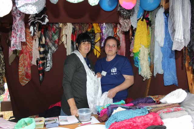 ADRA ukazovala a prezentovala všechny programy, také jsme lákali veřejnost do našeho obchůdku ve Slezské ulici. Ve stánku prodávali Věrka a Beata šátky, které pro nás vybral místní sociální a zdravotní odbor. „Někdy to opravdu byla fuška. V jeden čas jsme nevěděli, komu se dřív věnovat. O šátky byl velký zájem,“ říká Věrka, prodavačka z Adra obchůdku.