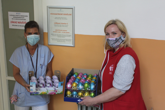 Hypermarket Globus v Havířově nás štědře obdaroval mnoha čokoládovými zajíčky, vajíčky, slepičkami i beruškami. Dostali jsme opravdu velké množství těchto laskomin, mohli jsme tak potěšit hodně seniorů, klientů různých zařízení i dobrovolníků, kteří nyní aktivně pomáhají.