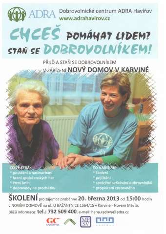 Školení pro zájemce se koná ve středu 20. března 2013 od 15.00 hodin v NOVÉM DOMOVĚ, na ul. U Bažantnice 1564/15 v Karviné-Novém Městě.