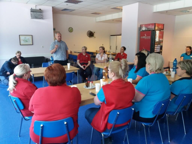 Měli jsme možnost seznámit zaměstnance karvinského a českotěšínského Tesca s dobrovolnickými aktivitami na území daných měst. Velké sociální cítění a empatie paní ředitelky havířovského Tesca Věry Haasové vedly k tomu, že si přála, abychom na ranním sezení 15.6. jako zástupci ukrajinského projektu DC ADRA Havířov předvedli prezentaci projektů a aktivit konaných na Zakarpatí.