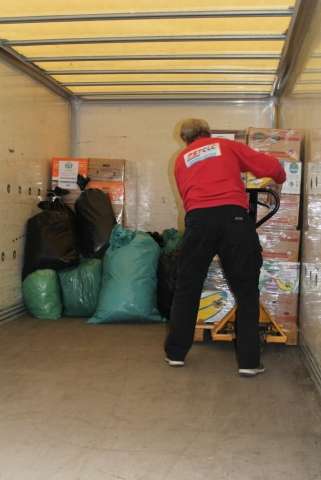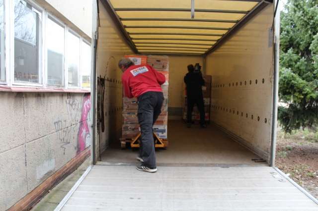 Od úterních brzkých ranních hodin probíhal postupný svoz palet s potravinami a igelitových pytlů do centrály logistické firmy v Moravské Ostravě, která se nabídla a sponzorsky celou humanitární sbírku dopraví do Mukačeva. Kamion odjížděl z Ostravy v úterý 31.března kolem poledne a na slovensko-ukrajinskou hranici dorazil včera, tj. 1.dubna, také v poledních hodinách. Humanitární sbírka obsahuje 15 tun potravin a 200 velkých igelitových pytlů s oblečením a obuví (cca 4,5tuny).
