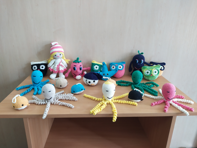 Naši dobrovolníci jsou nesmírně šikovní a zručně zdatní. Zajištují nejen nákupy seniorům, píší dopisy a pohlednice, jsou v telefonickém kontaktu s lidmi, kteří potřebují potěšit. Někteří však i ve volné chvíli háčkují chobotničky či jiné různé pohádkové postavy.