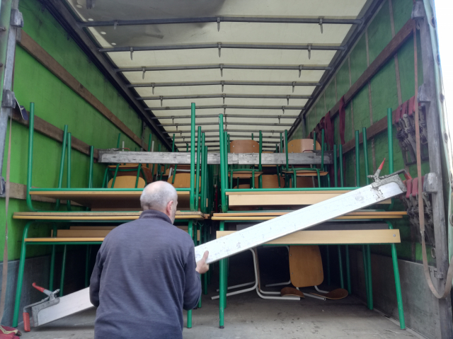 Děkujeme Základní škole na ulici Františka Hrubína v Havířově - Podlesí pod vedením pana ředitele Mgr. Tomáše Ptáčka. Vyřazené, ale ve velmi dobrém stavu ještě poslouží žáklům ve vesnických školách na zakarpatské Ukrajině. Padesát lavic a sto deset židlí zaplnilo auto, které poskytnul dopravce Daniel Zotyka. Mockrát děkujeme :-)