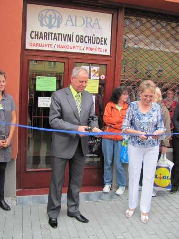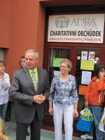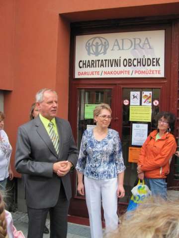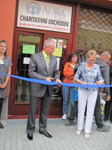 Jsme rádi, že naše pozvání přijal pan primátor Ing. Zdeněk Osmanczyk a že si ve svém vytíženém programu našel chvilku a svou přítomností podpořil otevření Charitativního obchůdku. S naší energickou Marcelou Holkovou - vedoucí Charitativních obchůdků a Sociálních šatníků pak přestřihnul slavnostní pásku a promluvil k občanům, kteří trpělivě čekali na otevření.