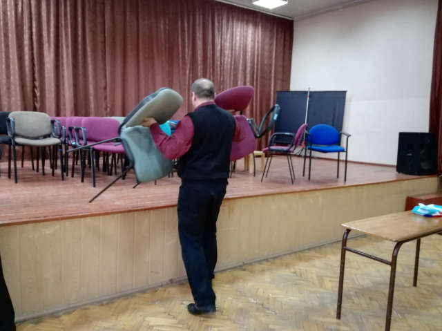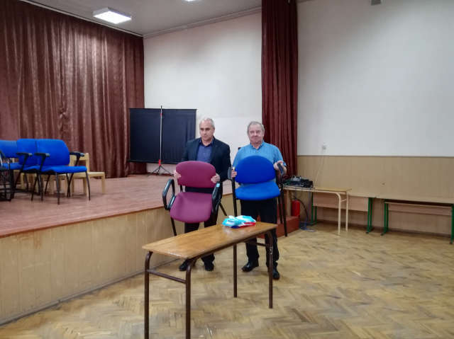 Se svolením vedení města Karviná jsme mohli část tohoto zařízení vyvézt i potřebným na Ukrajinu. Do škol na Zakarpatí se tak dostaly židle všeho druhu. Vybaví se jimi společenská místnost, ale i kanceláře školy.