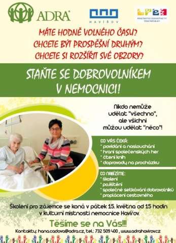 Pozvánka pro zájemce o dobrovolnictví na školení do havířovské nemocnice