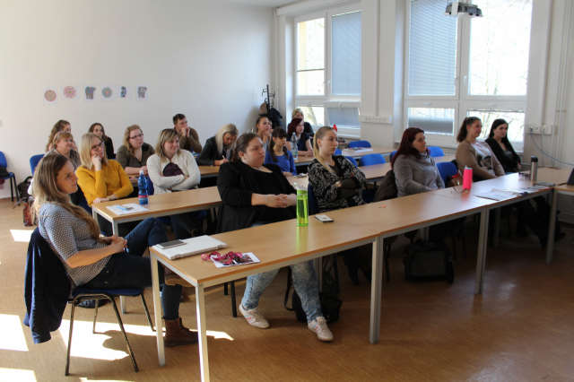 Koordinátoři Jana Žoričová a Jiří Sobota dnes přednášeli o ADŘE studentům Vysoké školy sociálně správní v Havířově. Ve třídě se nacházelo plno sympatických potencionálních dobrovolnic a nesmíme zapomínat také na mladého muže v zadní lavici. :-)