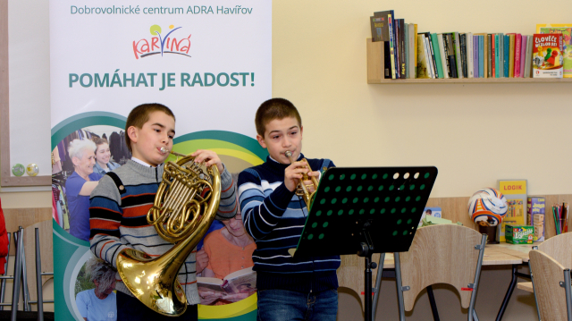 Posezení jim zpestřili dva žáci Základní umělecké školy Bedřicha Smetany v Karviné, sourozenci Adam a Jakub Zolichovi, hrou na trubku a lesní roh.