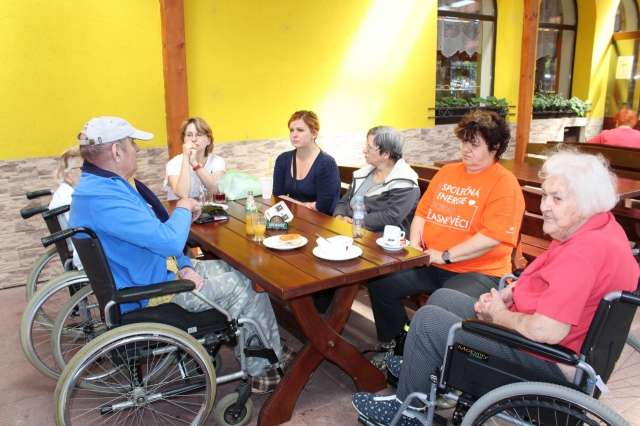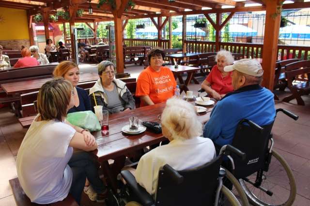 Lepší počasí jsme si nemohli přát, sluníčko nás příjemně hřálo, všichni měli výbornou náladu. Pomalu jsme se seznamovali, povídali jsme si, šli jsme městem a bylo nám všem moc hezky. Někteří senioři projevili zájem zajít si do supermarketu a nesmírně si nakupování (často až po roce) užívali. Další skupinka si prodloužila procházku a následně jsme se všichni sešli v cukrárně, tam bylo teprve pozdvižení! Všichni jsme si vybrali z pestré nabídky zákusků a zmrzlin tu svou nejoblíbenější dobrotu a spokojeně jsme si pak pochutnávali u kávičky, muži u piva…