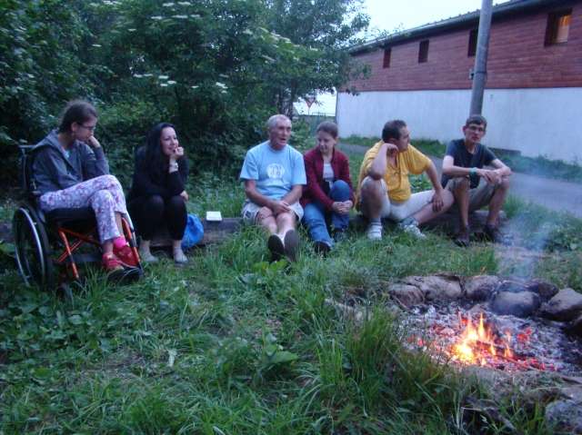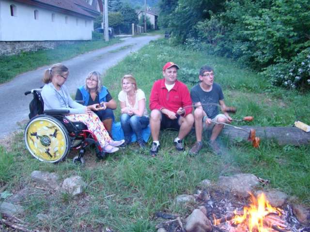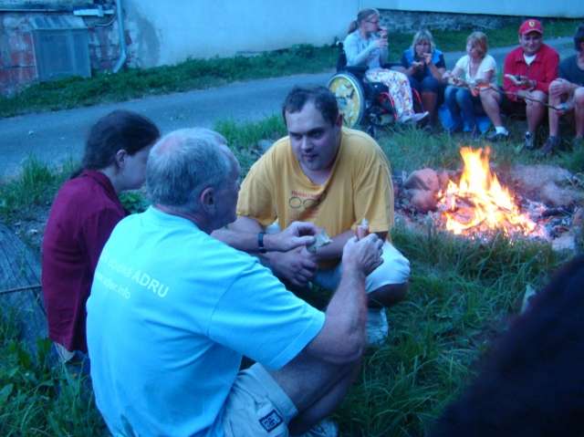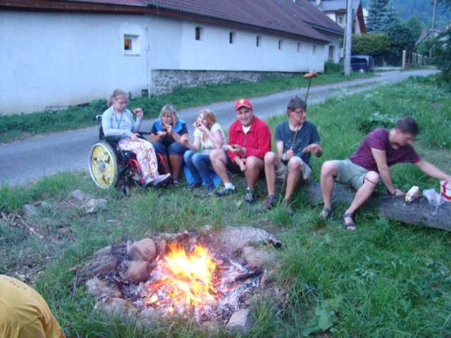 Jelikož jsme tentokrát nejeli autobusem, všichni se postupně sjížděli na Rajskou boudu svými auty. Rodiče dovezli své děti i s asistenty kolem 15h. Poté se účastníci Tandemu IV. ubytovali, trochu občerstvili a seznámili se s nadcházejícím programem. Před večeří jsme se šli na krátkou procházku, čas po večeři jsme strávili příjemným povídáním a následným opékáním párků a pak hurá do postelí :-)