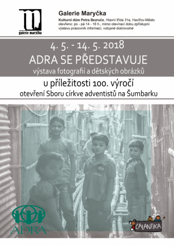 Přijďte se podívat na jedinečnou výstavu "ADRA se představuje" do Galerie Maryčka v Kulturním domě Petra Bezruče v Havířově. Výstava trvá od 4.5. do 14.5. vždy od 14h do 18h. Čekají vás fotky dobrovolnictví na Karvinsku, fotky zahraničních projektů na Ukrajině, v Bangladéši - centrum Čalantika a komiksy kreslené žáky základních a středních škol.