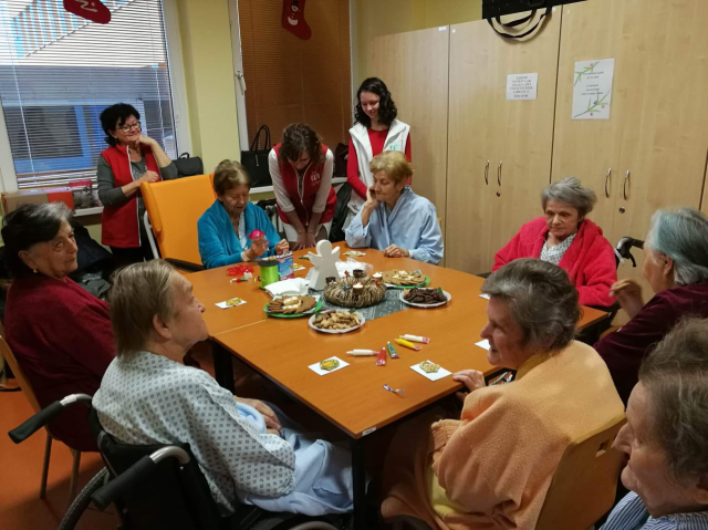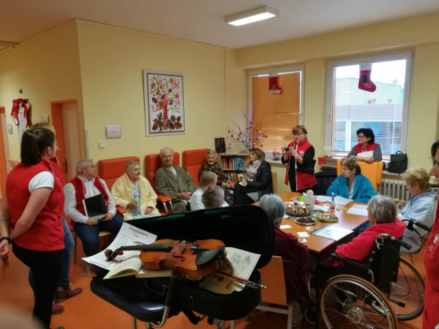 Zpívali jsme koledy, povídali si o vánočních zvycích, říkali vánoční básně a bylo nám všem moc hezky... Dobrovolnice Izabela Schimanietzová hrála na housle a jejich nádherný zvuk byl slyšet po celém oddělení, a tak mohli poslouchat všichni, i ležící pacienti, kteří si pobrukovali s námi.