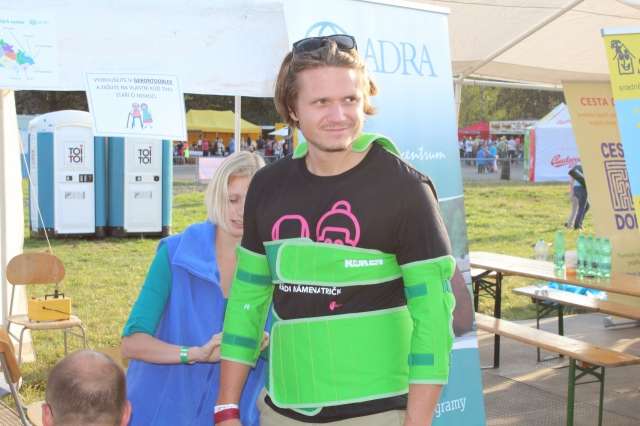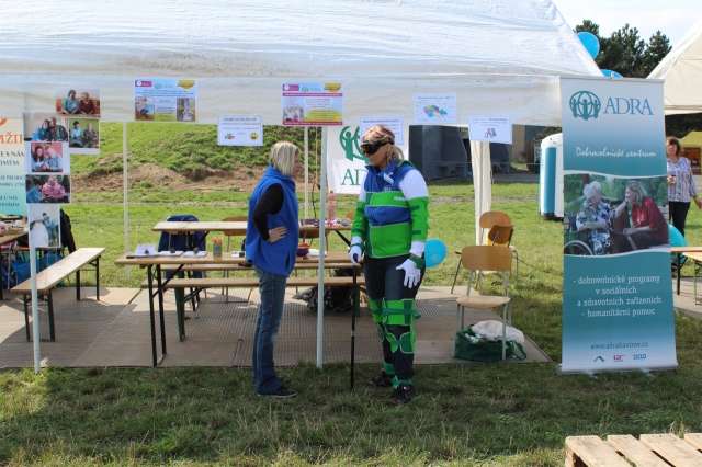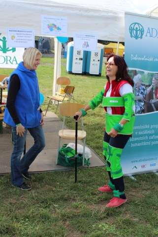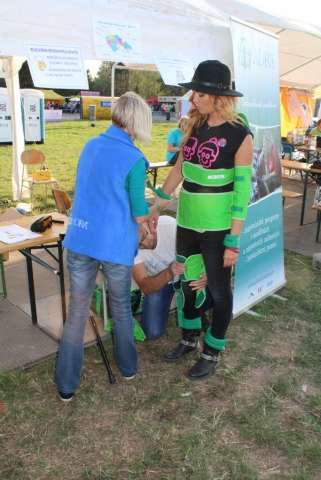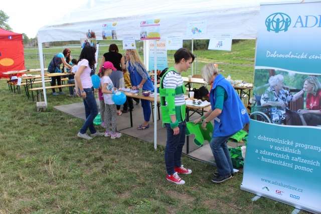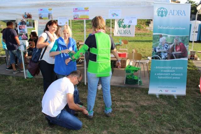 Jsme rádi, že jsme se mohli tohoto Festivalu zúčastnit. Lidé si v našem stánku mohli díky gerontoobleku na vlastní kůži vyzkoušet tíhu stáří či nemoci. Gerontooblek je složen z několika částí, které simulují špatnou pohyblivost, ztuhlost kloubů, úbytek svalové síly, zhoršení zraku, nedoslýchavost, snížení hmatové citlivosti. Tato pomůcka byla velice oblíbenou aktivitou, vyzkoušelo si jej cca 50 účastníků Festivalu, včetně Taťány Kuchařové a jejího partnera Ondry Brzobohatého, kteří se shodli na tom, že musí hodně cvičit, aby se co nejdéle udrželi v dobré kondici! :-) Lidé si mimo jiné mohli u nás vyzkoušet tzv. Alzheimer rozcvičku – pomocí speciálních obrázků zjistili, jak jim pracují „mozkové závity“. Taktéž jsme měli připraven rodinný kvíz, kde rodiny, ale i jednotlivci či páry vyplňovali 5 jednoduchých otázek, za jejich zodpovězení pak obdrželi malé odměny.
