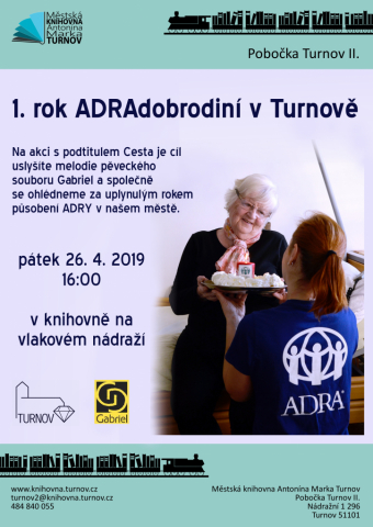 V pátek 26.4. dubna se od 16 hodin v knihovně turnovské nádražní haly uskutečnily „adrácké“ 1. narozeniny. Smyslem setkání, které mělo podtitul Cesta je cíl bylo především poděkování dobrovolníkům za jejich nezištnou pomoc. Jedná se o 20 členný dobrovolnický tým lidí, které spojuje nejen přátelství, ale touha dělat něco smysluplného.
