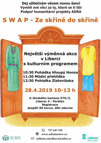 V neděli 28.4. se od 10 hodin do 13 hodin bude konat v Liberci v Kostele sv. Vincence z Pauly (ul. U Jánského kamene 3) jedinečný swap aneb přijďte směňovat své nepotřebné anebo okoukané oblečení