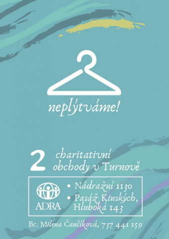 Humanitární organizace ADRA v Turnově pořádá akci s názvem Neplýtváme. Tato akce má za cíl upozornit na příliš velké plýtvání a zkusit se zamyslet nad tím, jak můžeme být šetrnější k přírodě a životnímu prostředí. Co proto může udělat? Lidé z Turnova a okolí mohou přinést do charitativních obchůdků cokoliv již nepotřebují, například oblečení, které už nenosí, hračky, knížky, nebo keramiku. Věci, které lidi přinesou poslouží k dalšímu prodeji a udělají radost dalším. Na štědré dárce a milé zákazníky se těší dobrovolníci každý všední den od 9 – 16 hodin. Více info na: https://adra.cz/dobrovolnictvi/liberec