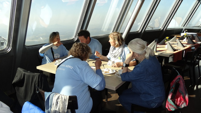 Díky vstřícnosti Skiareálu Ještěd jsme se svezli sedačkovou lanovkou skoro až k Hotelu Ještěd, kde nás všechny zdarma čekalo občerstvení v podobě čaje, kávy a vynikajícího jablečného závinu. Děkujeme!