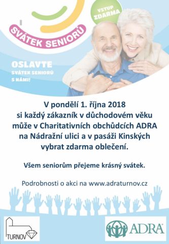 Dva turnovské Charitativní obchůdky ADRA si nekladou za cíl pouze získat finance na vznik a rozvoj dobrovolnických programů u seniorů, ale díky ochotným dárcům nabízí pomocnou ruku. Vedoucí tohoto projektu Milena Čančíková k tomu dodává: „ Velmi mě těšilo, že se na nás obrátila např. sociální pracovnice turnovské nemocnice a mohli jsme poskytnutím ošacení pomoct při propouštění pacienta v jeho nelehké sociální situaci. Taktéž jsme zahájili jednání o zprostředkování oblečení pro novorozenecké oddělení určené pro děti s kombinovanými vadami neslučitelnými se životem. Pro seniory jsme připravili na pondělí 1. října dárkovou akci a každému zákazníkovi v důchodovém věku, dle jeho výběru, v tento den nezaúčtujeme jeden kus oblečení“.