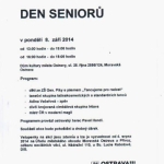 V pondělí dne 8. září 2014 se od 13.00 do 15.00 a od 16.00 do 18.00 se bude konat v Domě kultury města Ostravy Den seniorů. Bude zajištěn bohatý program, občerstvení a drobný dárek.