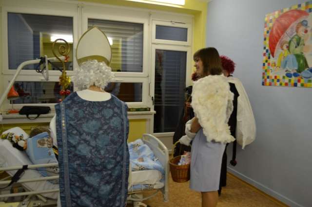 Odpoledne 5. 12. 2016 navštívil Dětské oddělení Mikuláš, anděl a dva čerti v podání dobrovolníků z dobrovolnického centra ADRA Ostrava. Postupně potěšili a postrašili děti na stanici malých i velkých dětí a zavítali i na jednotku intenzivní péče. Děti, které mohly opustit pokoje, se sešly v herně, za ostatními Mikuláš se svými pomocníky přišel přímo na pokoj. Dobrovolníci měli pro děti připraveny balíčky, které si zasloužili ti, kteří zarecitovali básničku či zazpívali písničku. Všichni museli slíbit, že pokud v letošním roce zlobili, tak v tom příštím se polepší, což s povděkem a velkým úsměvem ocenili zejména přihlížející rodiče.